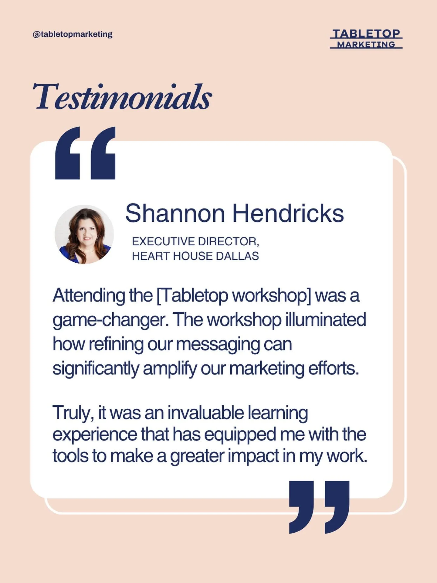 “Attending the [Tabletop workshop] was a game-changer. The workshop illuminated how refining our messaging can significantly amplify our marketing efforts.
